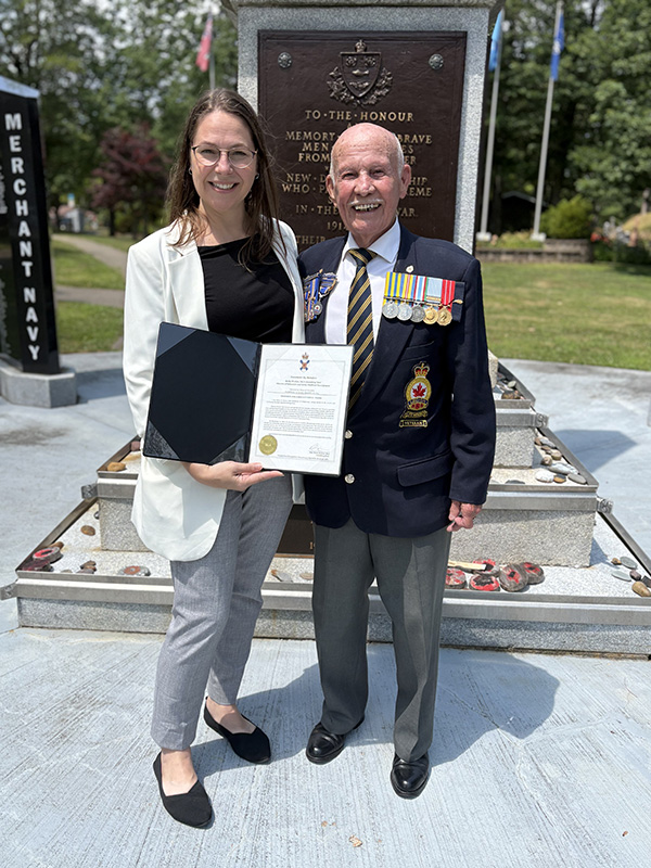 What a beautiful day to meet up with my friends, Dan Hennessey and Bob Henderson at the Veterans Memorial Park in Bridgewater. I was honoured to present these fine gentleman with a copy of the Members Statement that I read in the NS Legislature on September 18, 2024, where I recognized Dan for his outstanding community service and Bob, a Korean War Veteran for his dedication to both country and our community.